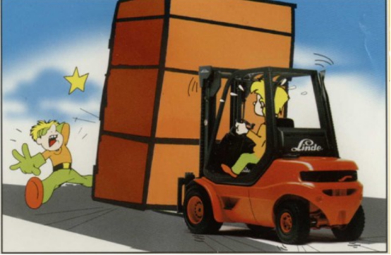 可能會出現(xiàn)在裝載或卸載聯(lián)合操作時(shí)速度快并且轉(zhuǎn)彎迅猛。必須在轉(zhuǎn)彎前減速!如果門架升起,叉車快速轉(zhuǎn)彎,或者加速前進(jìn)并轉(zhuǎn)向或者在斜坡上轉(zhuǎn)向,都可能會引起橫向傾翻。在行駛時(shí)必須降下門架!如果過載、過分前傾或貨物重心偏離都存在橫向傾翻的危險(xiǎn)。